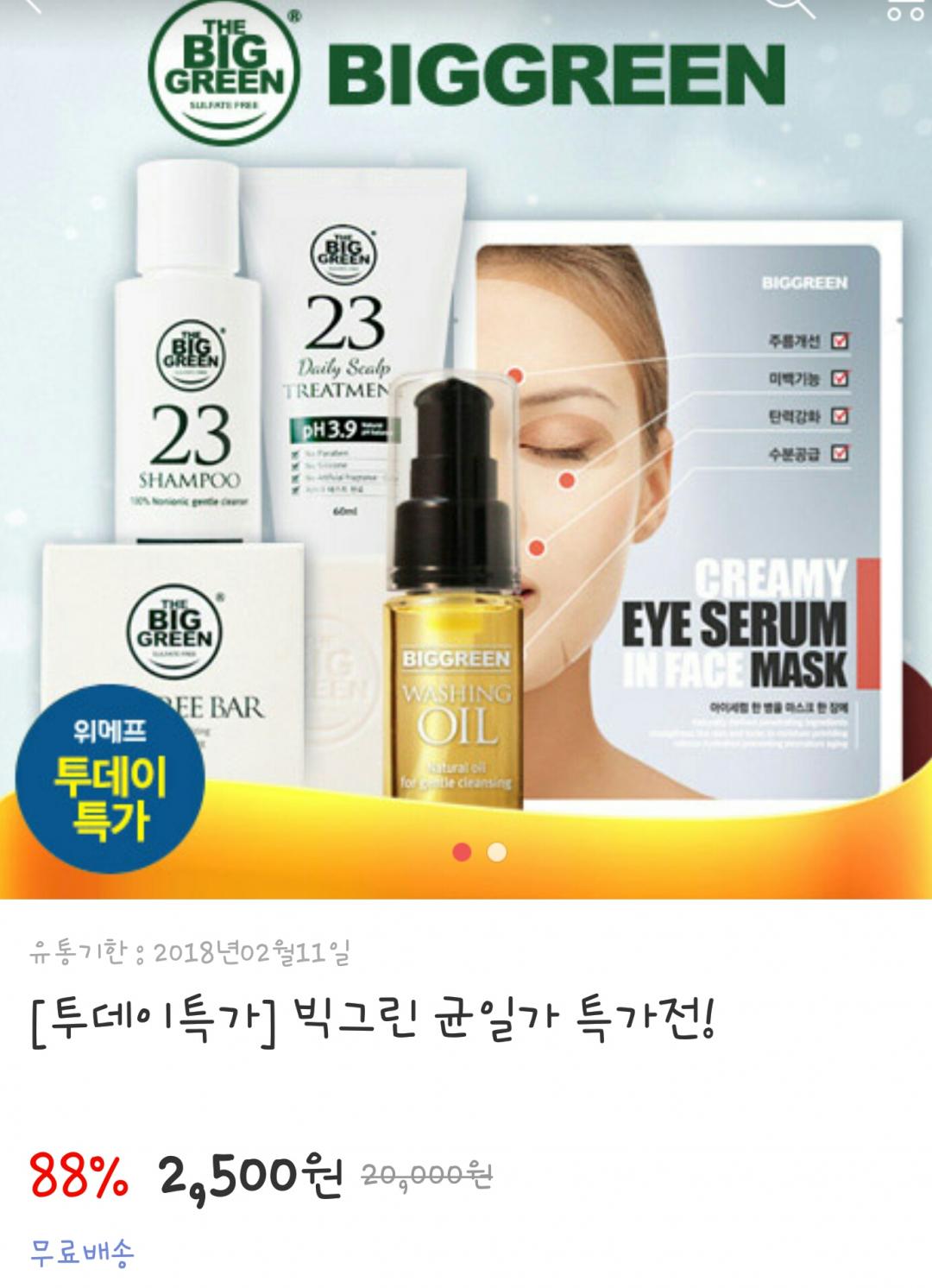 [위메프] 빅그린 화장품 균일가 특가 (2,500/0)