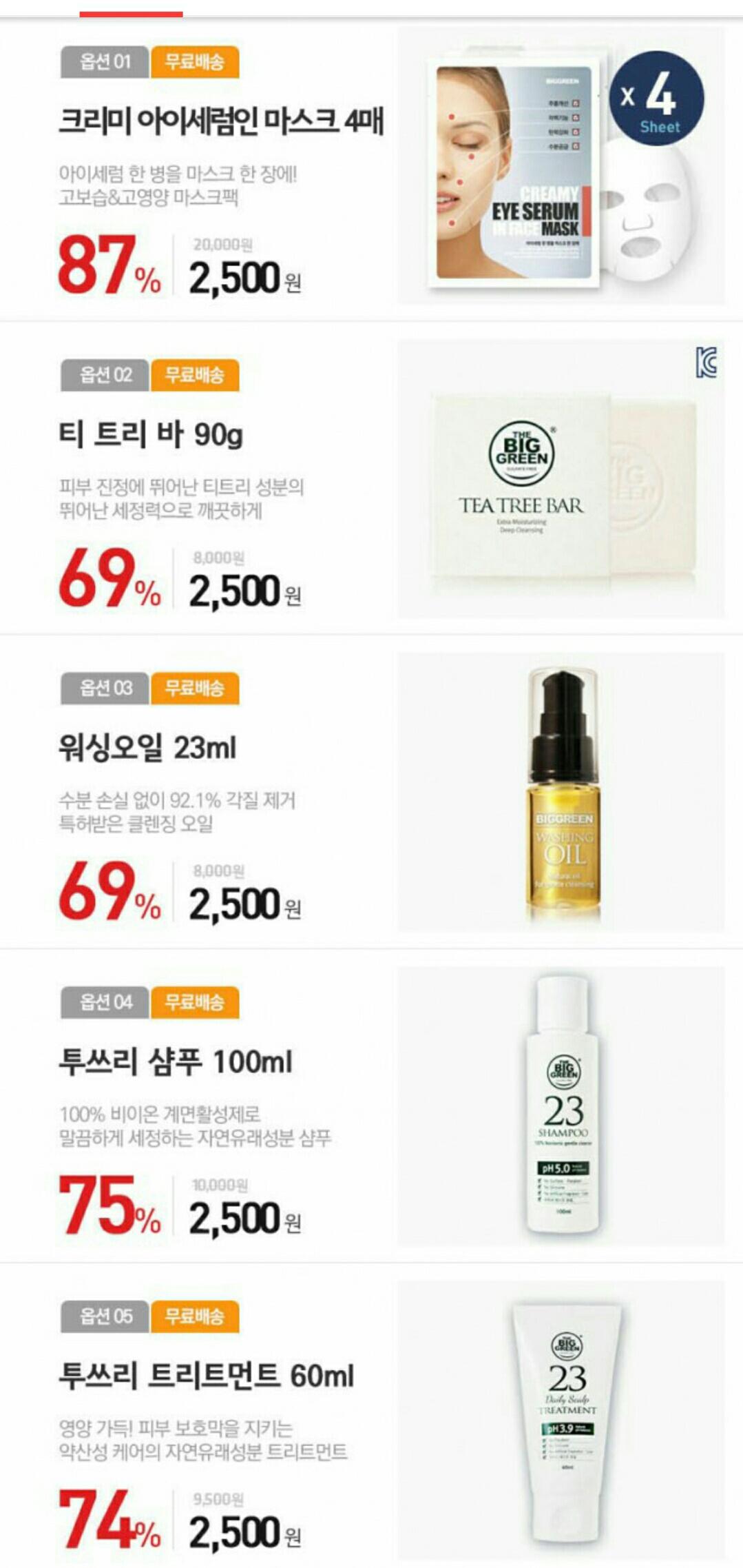 [위메프] 빅그린 화장품 균일가 특가 (2,500/0) > 이건어때