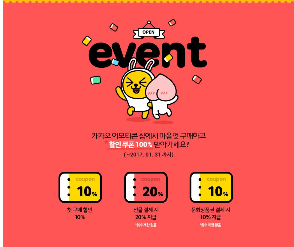 카카오 이모티콘샵 오픈기념으로 10% 이벤트 하네요
