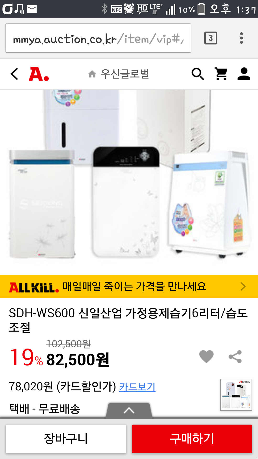 [옥션] 신일 제습기 6L(82,500/무배) > 이건어때