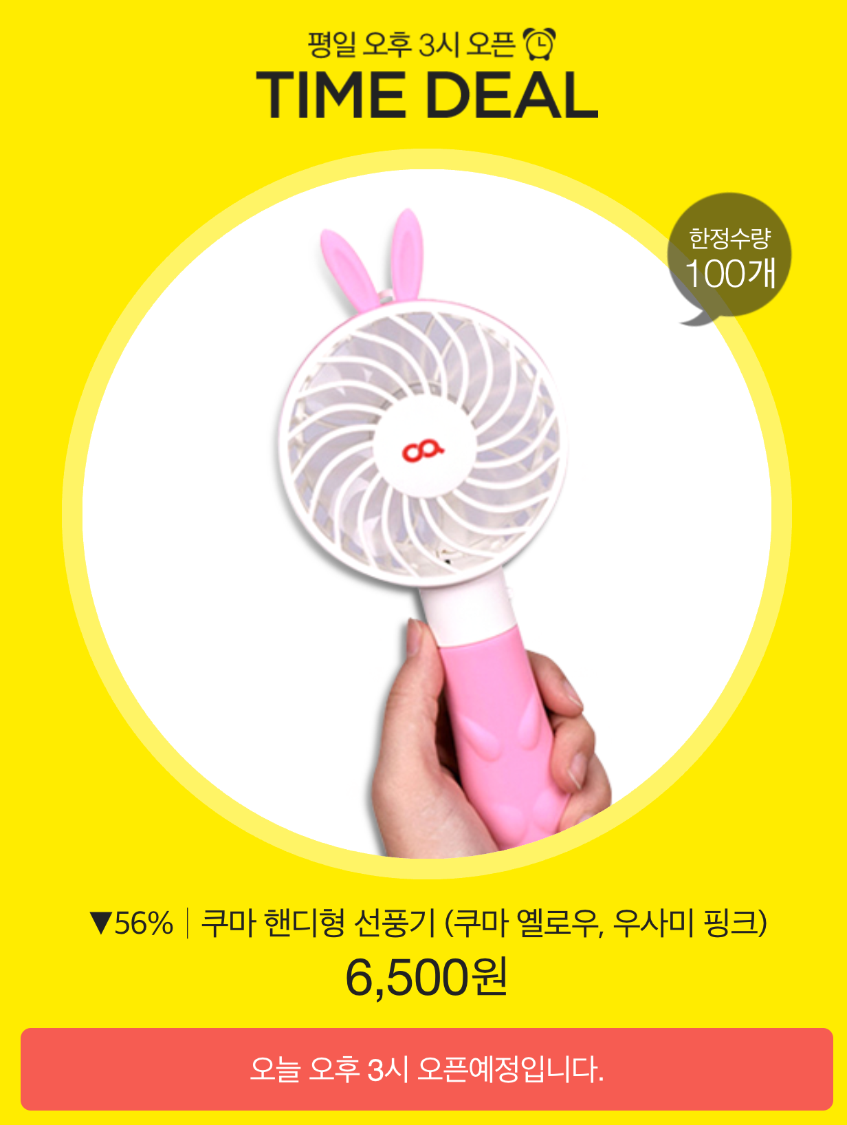 [인터파크 앱] 쿠마 핸디형 선풍기 3시오픈 (6,500/무료) > 이건어때