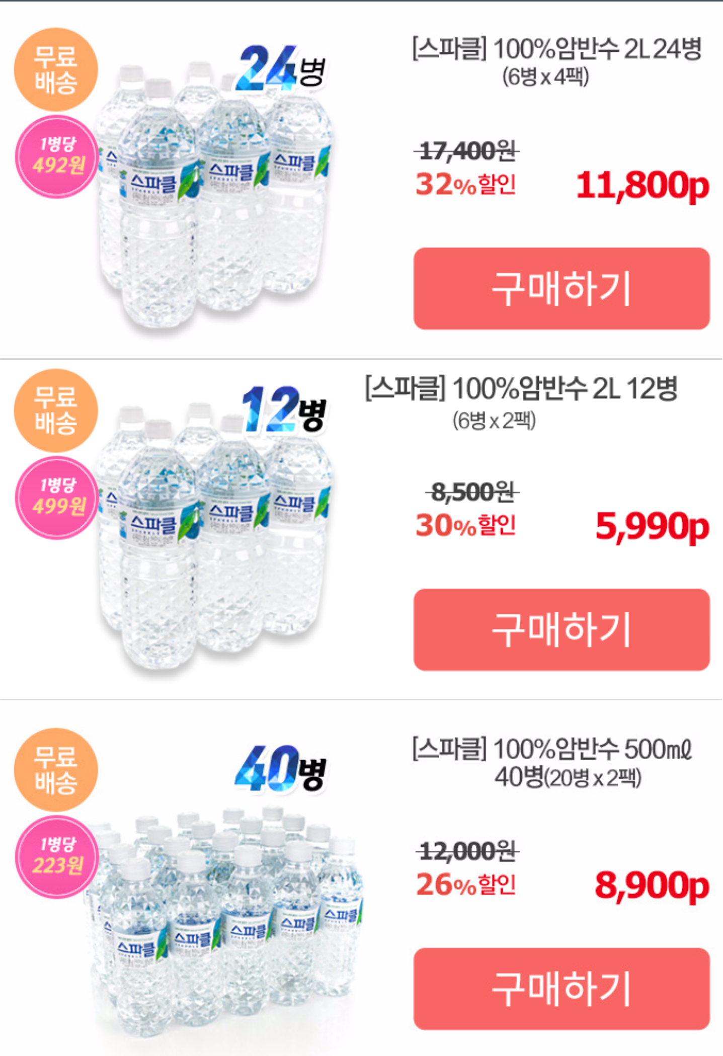 거기서 선택할때 24병으로 선택하셔서 구매하시면 병당 464원으로 이딜보다는 조금 더 비싸긴 한데 충분히 저렴합니답. 이 딜이 추가적으로 오는 500미리병이 있어서 좀더 싸구욥