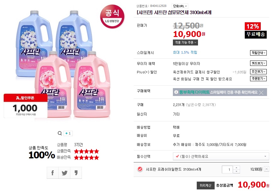 중복가능 1,000원 쿠폰 적용시 9,900원 결제 가능합니다.