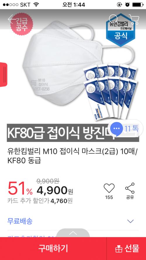 [11번가] 유한킴벌리 방진마스크 10p (4,900/무료배송) > 이건어때