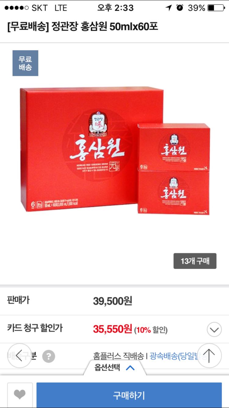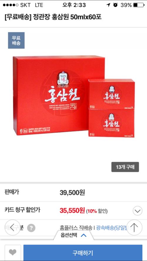 [홈플러스 몰] 정관장홍삼원50*60포 (39500원무료)