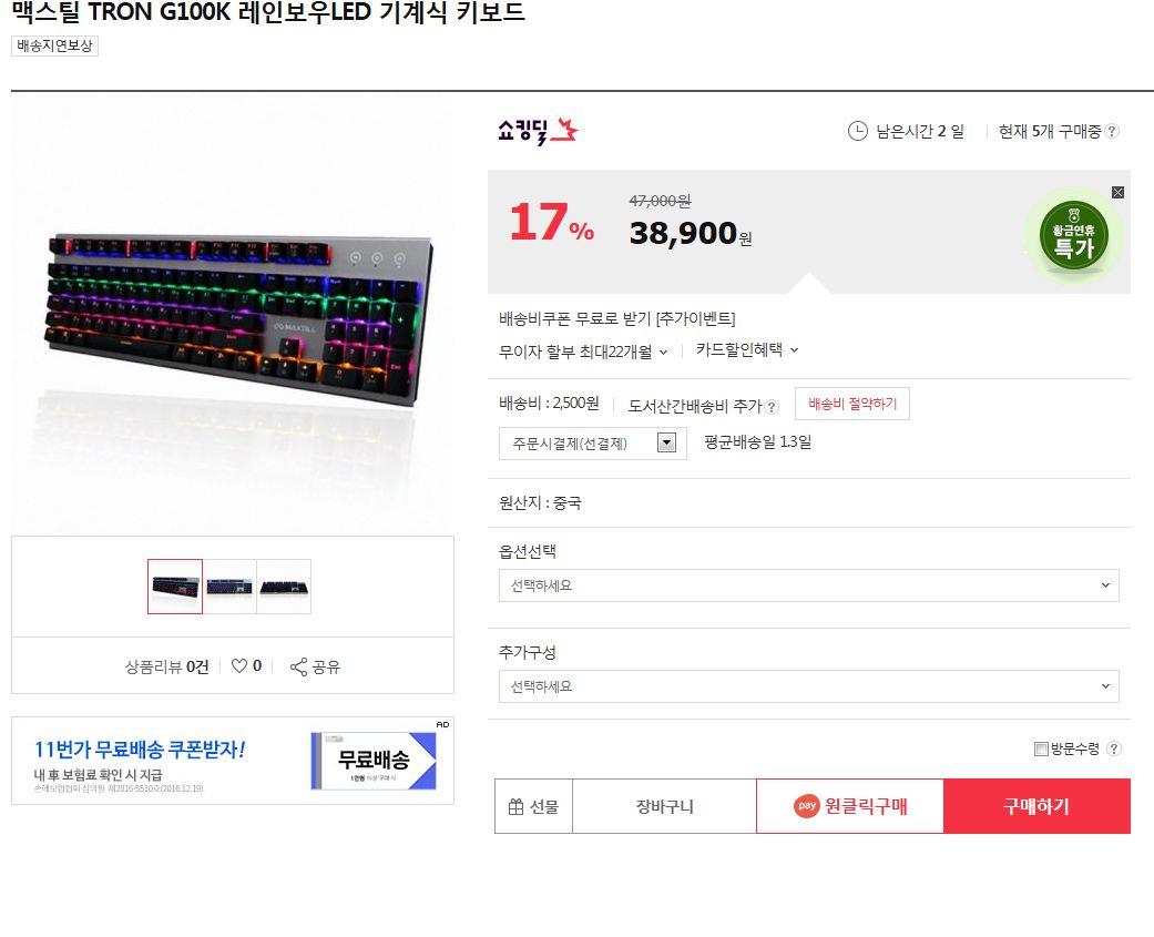 가성비 갑이라는 맥스틸 G100K 11번가에서 할인행사 하네요.