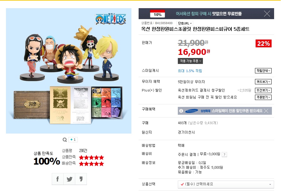 [옥션] 원피스 초콜릿 한정판 원피스 피규어 5종세트 (16,900원/3,000원) > 이건어때