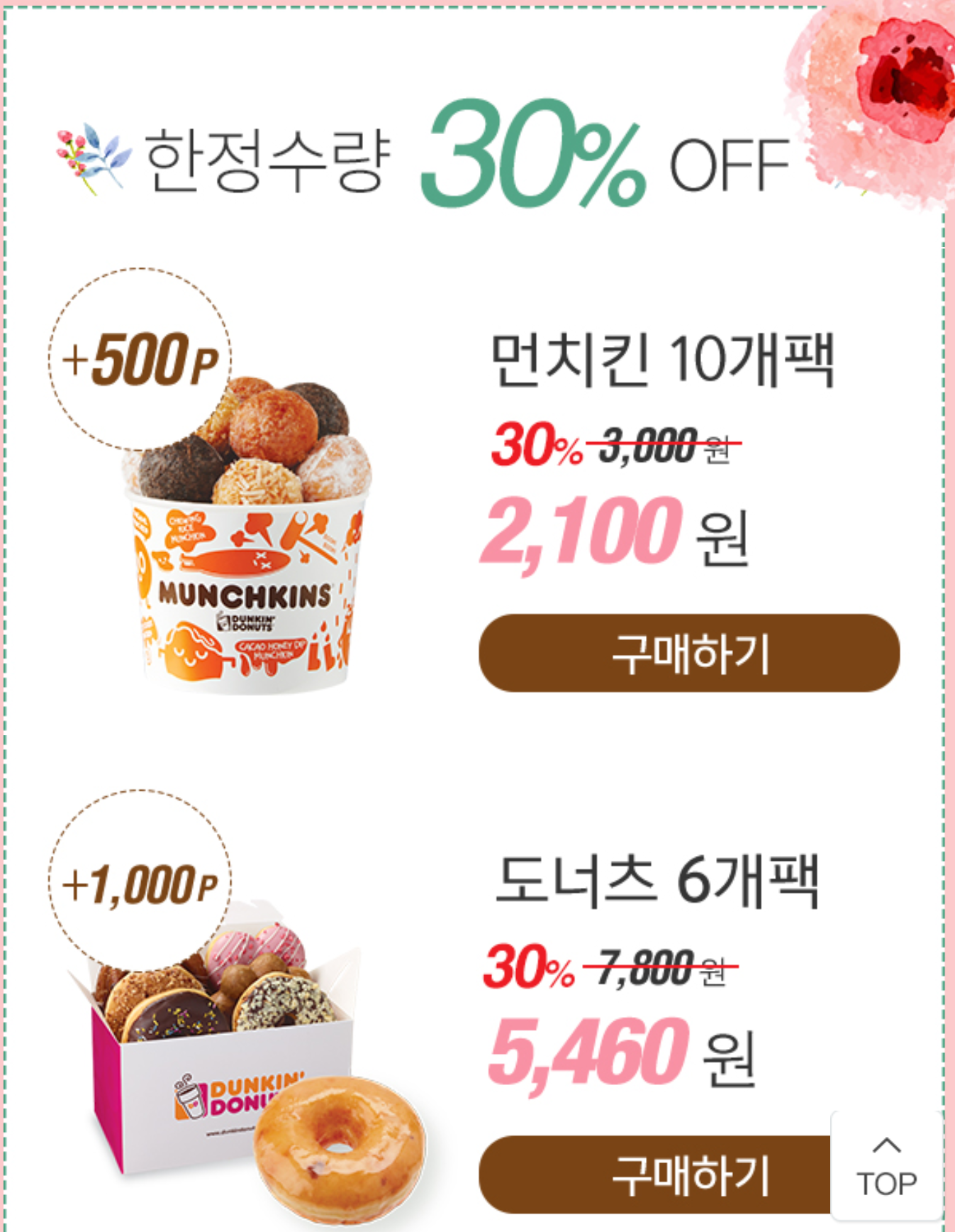 [셀렉토리] 던킨도너츠 30%할인+@해피포인트(2100~)