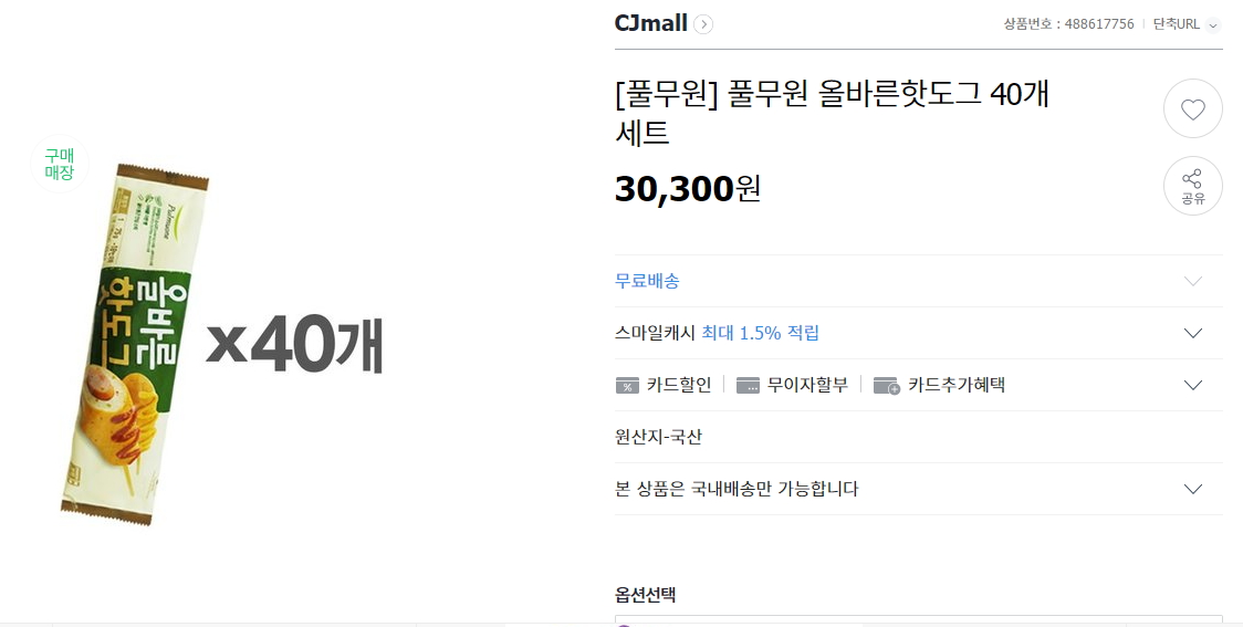 [지마켓] 풀무원 올바른핫도그 40개 ->최종 할인가 20,660원(30,300원/무료)
