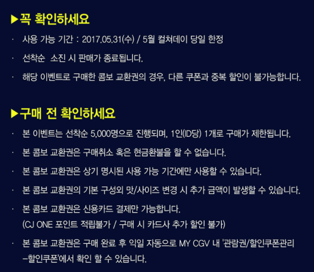 본 콤보 교환권은 신용카드 결제만 가능합니다