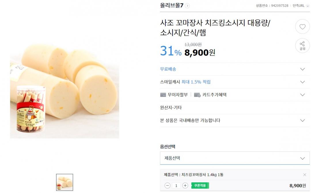 가격은 천하장사에 비해 많이 많이 저렴한데 맛은.. 블로그 찾아보니 맛은 괜찮다고 합니다.(치즈맛 X, 치즈맛 평이 많이 없어서.. 오리지날로 링크합니다.)