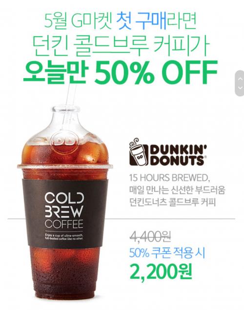 [g마켓] 5월 첫구매 던킨 콜드브루50% (2,200)