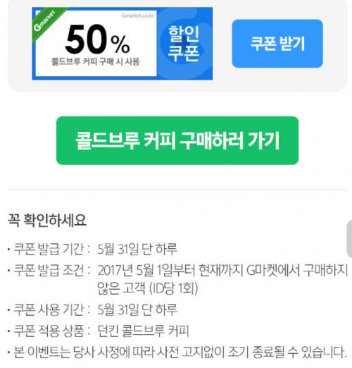 [g마켓] 5월 첫구매 던킨 콜드브루50% (2,200) > 이건어때