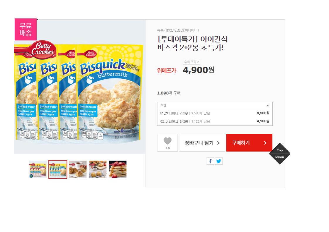 [위메프] [투데이특가] 비스퀵 2+2봉 초특가 (4,900원/무료) > 이건어때