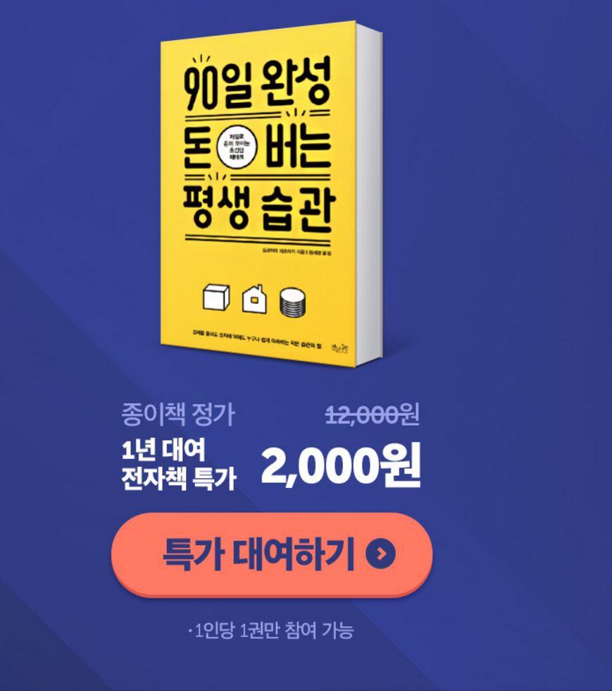 [리디북스] 90일 완성 돈 버는 평생습관 1년 대여 (2000원/배송비 무) > 이건어때