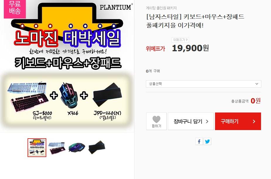 위메프에서 키보드 + 마우스 + 장패드를 패키지로 19900원에 무료배송으로 팔고있습니다.