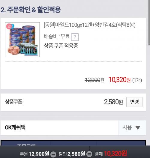 [11번가] 동원 마일드참치 100g x 12 +양반김 8봉(12,900/0)