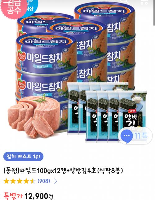 [11번가] 동원 마일드참치 100g x 12 +양반김 8봉(12,900/0) > 이건어때