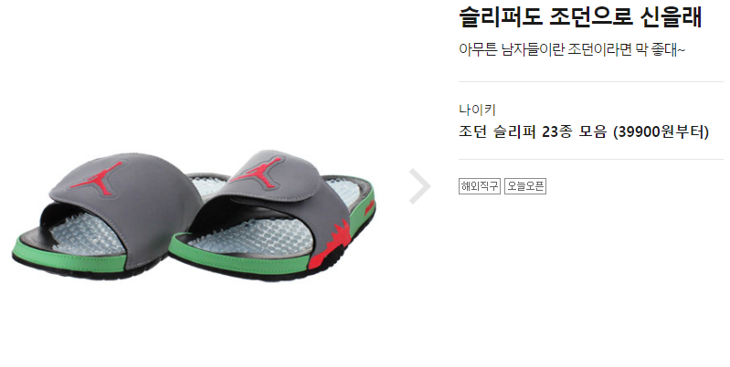 특별한 가격으로 엄청난 특가는 아니지만, 조던 로고 슬리퍼를 모아서 파는 것에 의미가 있겠네여.