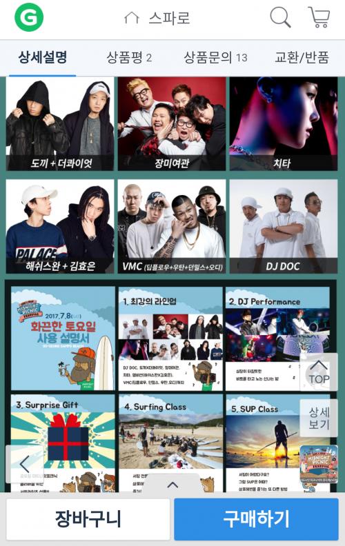 고성 미드나잇 피크닉 뮤직페스티벌 7월 7일~9일 티켓입니다 하루권은 다른 사이트도 거진 비슷비슷한데 금토 양일권이 가격좋네요