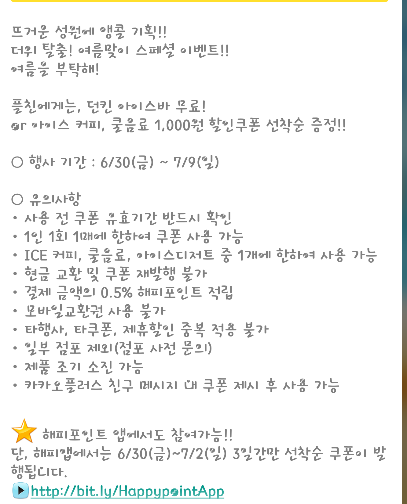 [카톡] 던킨 플러스 친구 아이스바 무료 (0)