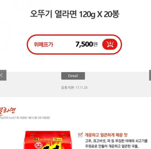 아 이런 매운거에 약하셧군요 ㅠㅠ 제가 열라면보다 조금 더 싼 진라면 20봉을 찾았는데 따로 이건어때에 올려드릴테니 보시고 구매하시면 괜찮을듯 합니다 ^^ | ||