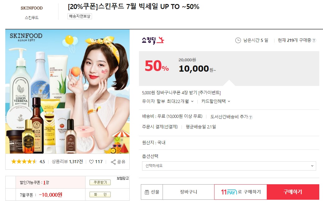 20% 쿠폰 적용가능합니다. (5천원 이상 최대 5천원 할인 가능)