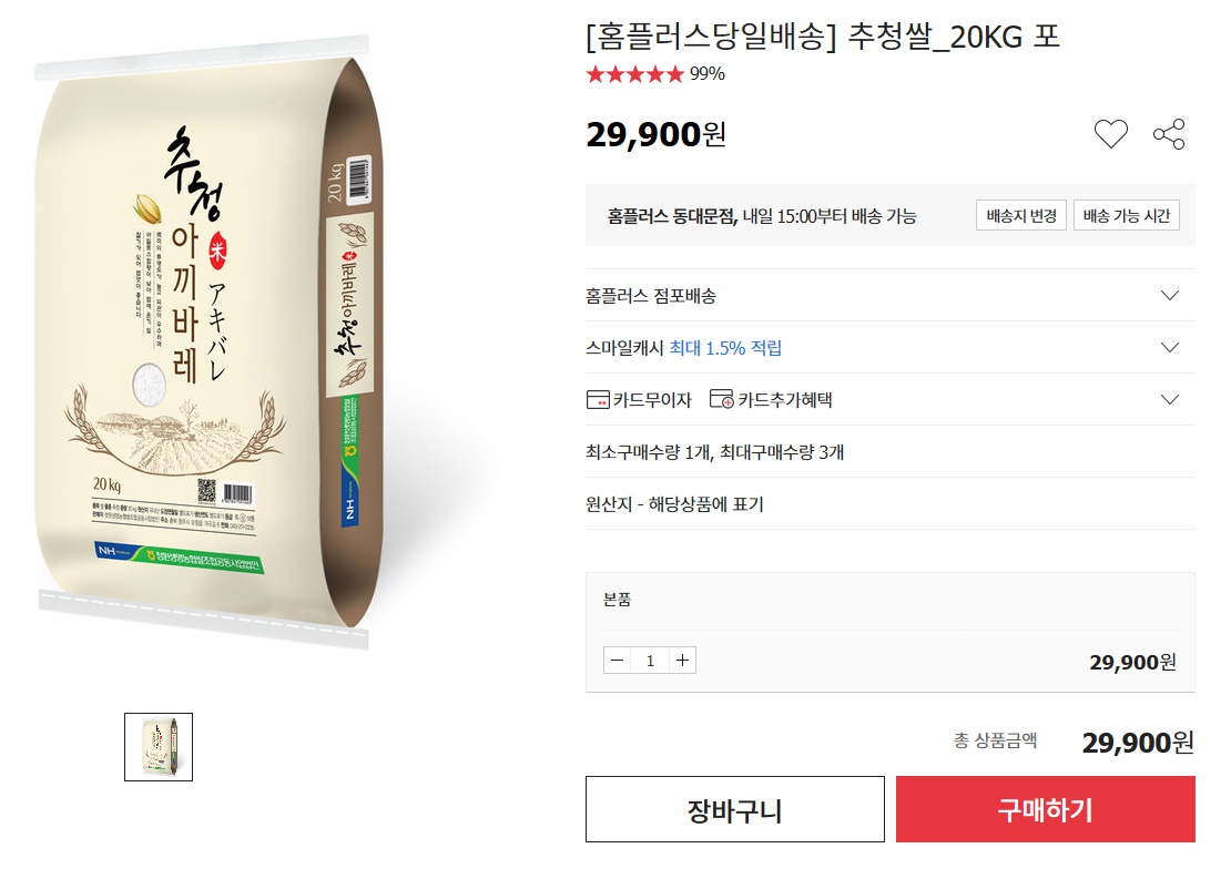 [옥션] 홈플러스 농협 추청쌀 20kg (29,900원/3,000원)/4만원이상 무료배송 쿠폰적용가능