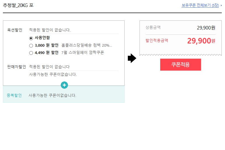 옥션 홈플러스 농협 추청쌀 20kg를 29900원에 유료배송으로 팔고있습니다. 추가로 쿠폰적용이 가능한데 매달주는