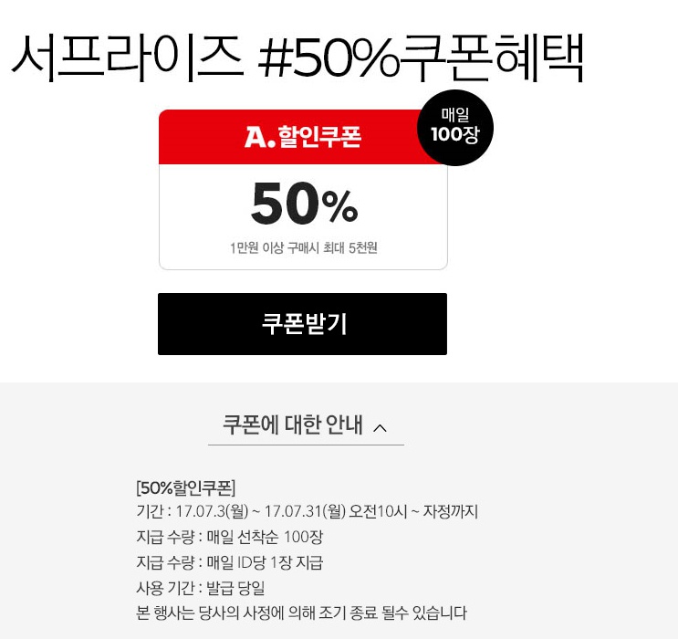 착순 100명으로 50프로 쿠폰도 준다고 하니 쿠폰 이벤트 참여해보시는것도 좋을듯 합니다. 추가로 4만원이상 무료