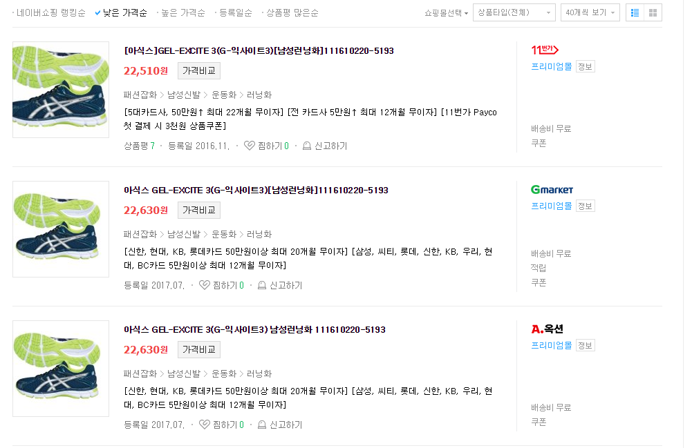 네이버에서 " 젤 익사이트3 " 말고 " 익사이트3 " 로만 검색하셔서 가격순 정렬 하시면 2만원 초반이 나올텐데.