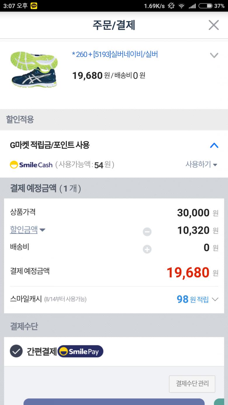 아식스 신발은 처음이지만, 27000원에 구입해서 방금 도착해서 신어 보고 꽤나 마음에 들어서
