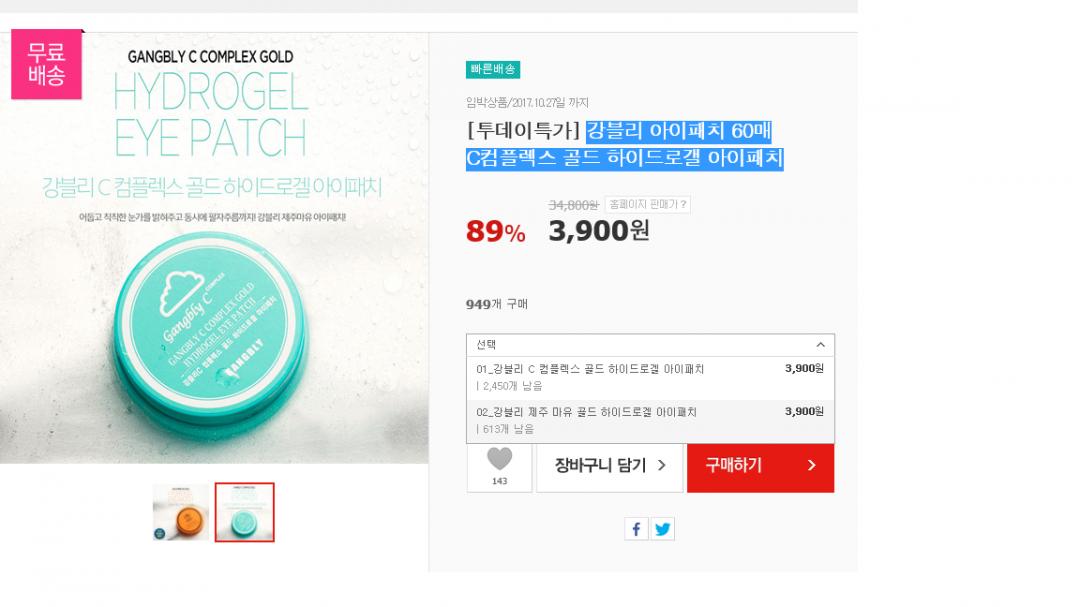강블리 아이패치 60매 C컴플렉스 골드 하이드로갤 아이패치가
