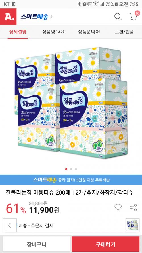 [옥션] 잘풀리는집 미용티슈 200매 12개 (11,900원 쿠폰가 10900/0)