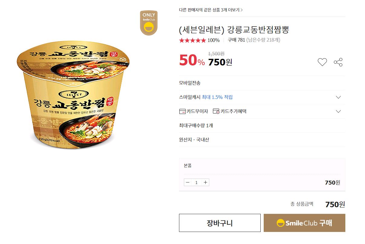 세븐일레븐 강릉교동반점짬뽕 반값입니다