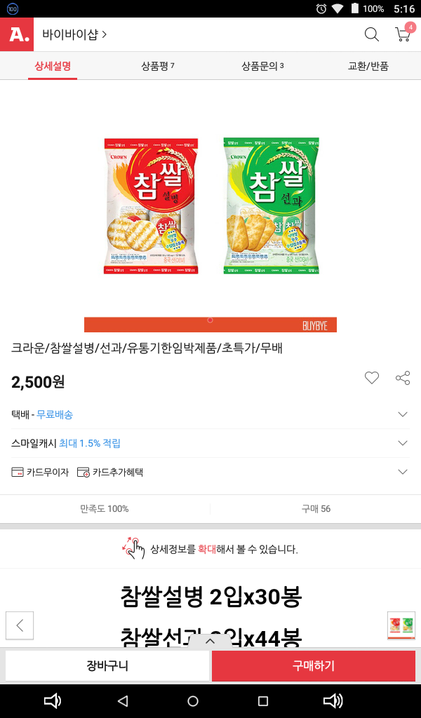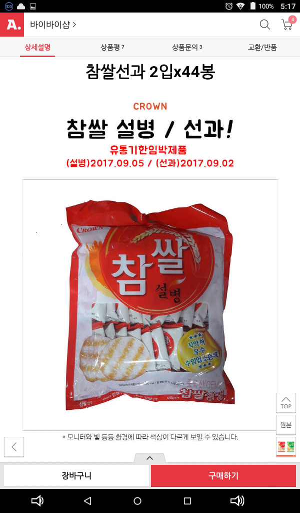 [옥션] 크라운/참쌀설병/선과/유통기한임박제품/초특가/무배 (2,500원/무료배송)