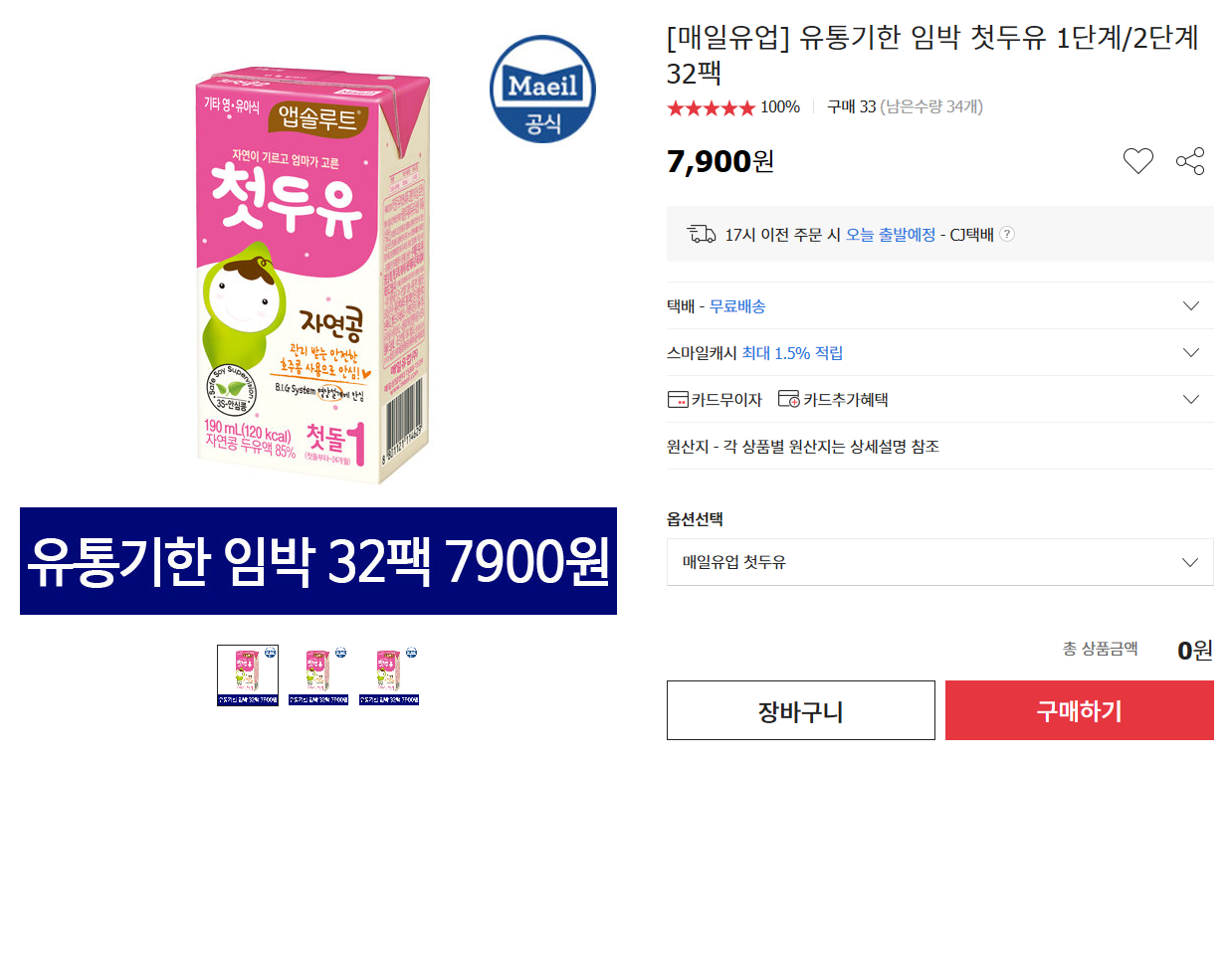 [옥션] 매일유업 첫두유1/2단계 32팩 (7,900원/무료) > 이건어때