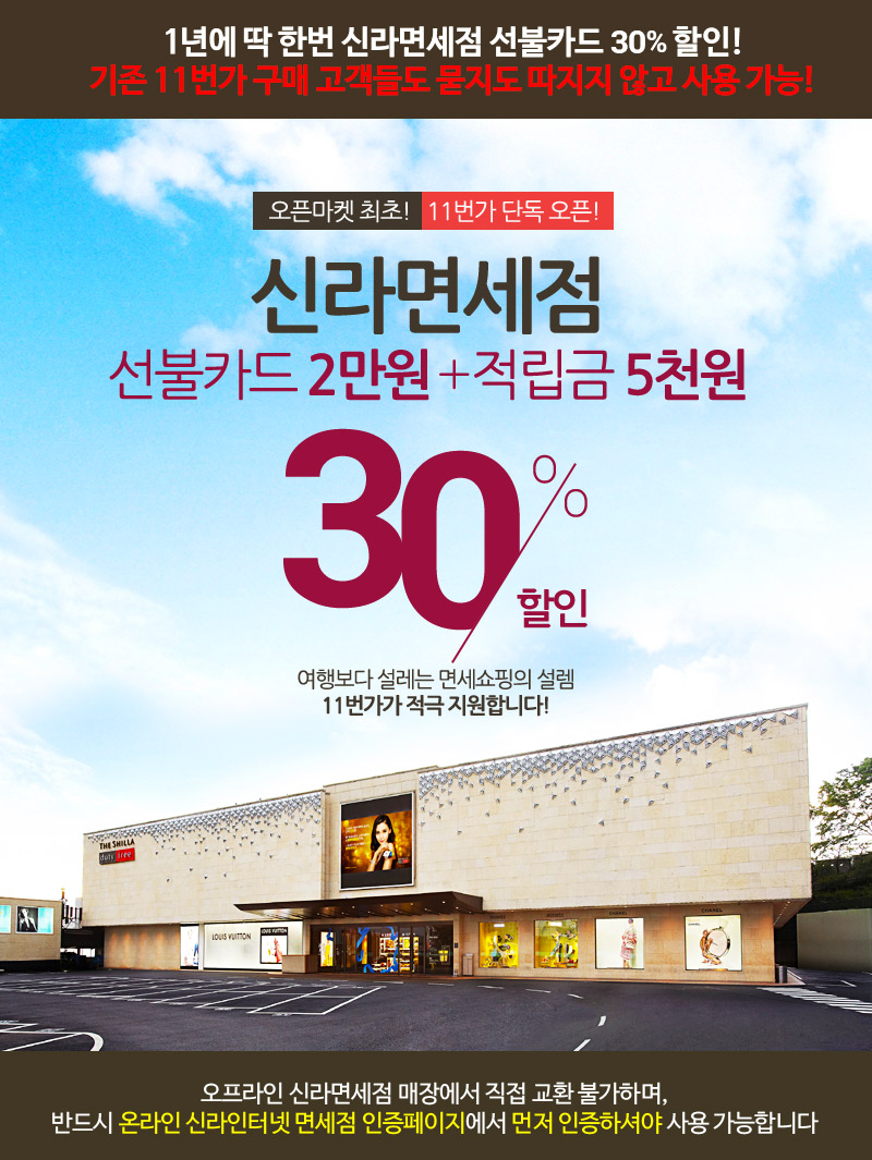 [11번가] 신라면세점 2만원 선불카드+5천원 적립금 / 14,000원~