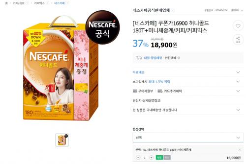 지마켓에서 네스카페 허니골드 180T + 미니체중계를 18900원에 무료배송으로 판매하고있습니다. 밑에 신선한 모카