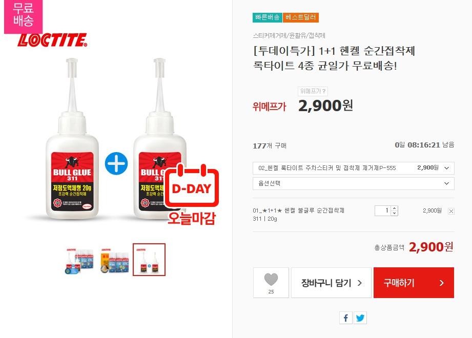 [위메프] 헨켈 불글루 순간접착제 311 1+1 (2,900원/무료)