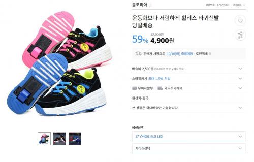 [지마켓] 휠리스 아동용 바퀴신발 (4,900원/2,500원)
