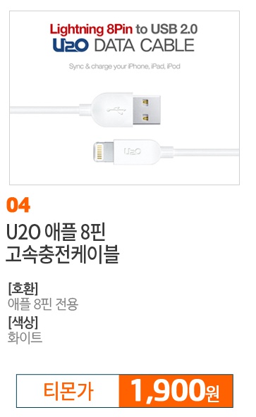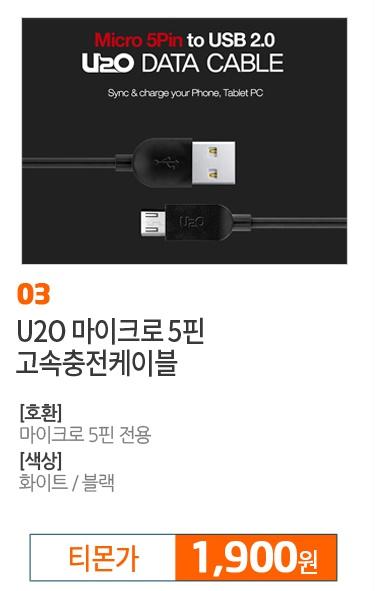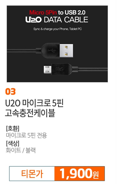 티몬에서 U2O 스마트폰 충전 케이블을 1990원에 무료배송으로 팔고있습니다. 위에 링크 들어가보시면 쿠폰 7프로