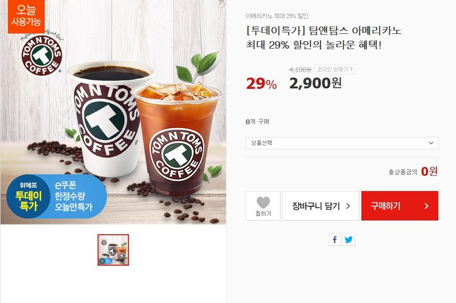 [위메프] 1010데이 탐앤탐스 아메리카노 ICE/HOT (2,900원/무료) > 이건어때