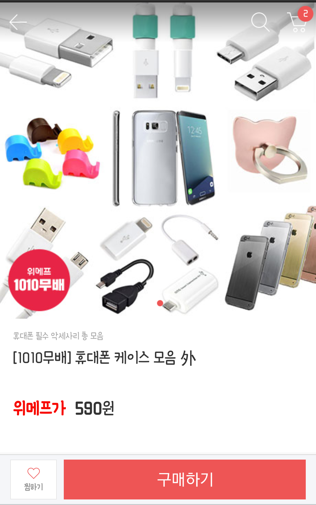 휴대폰 케이스 열 몇 종류랑, 케이블 여러가지 590원씩 입니다.