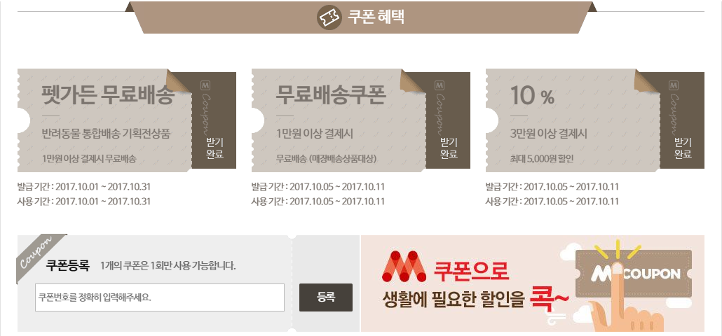 3만원 이상 10%할인쿠폰(최대5천원)도 같이 있으니까