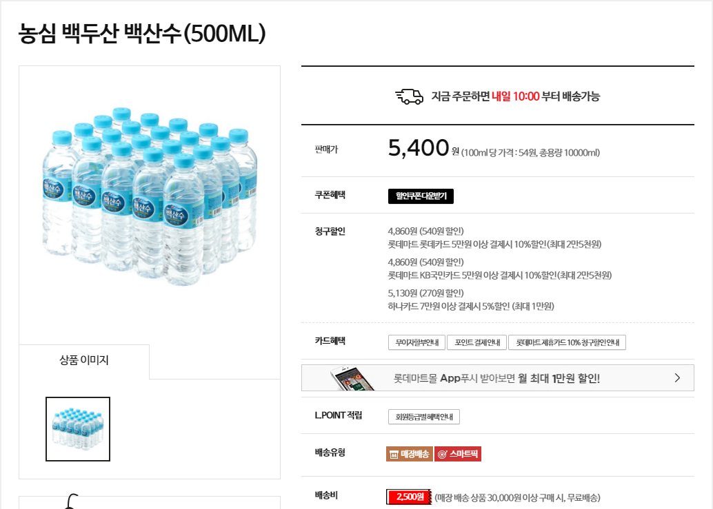 500ml 20병짜리 2세트 주문하면 10,800원으로 1만원 넘어서