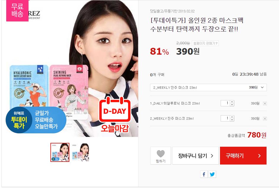 [위메프] 올인원 마스크팩 (390원/무료) > 이건어때