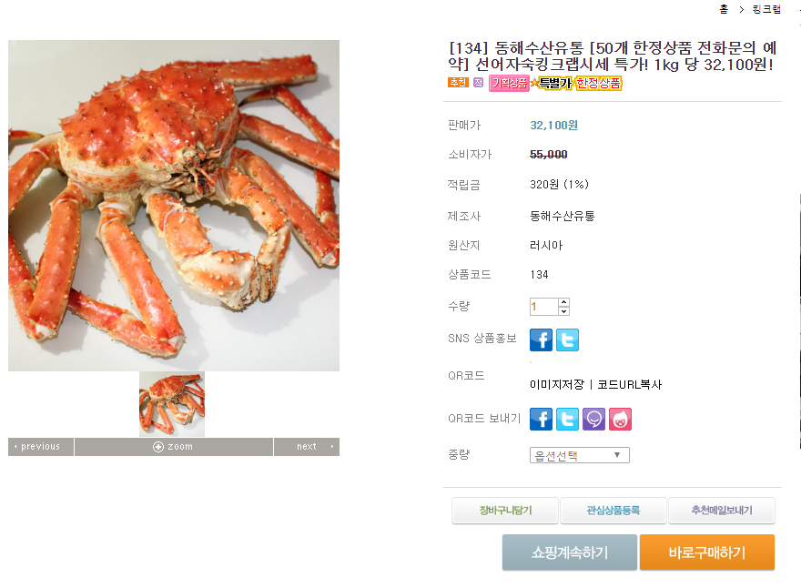 특가하고 있길래 킹크랩에 관심있는 분들에게