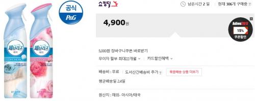 페브리즈 에어 2개 4900원입니다 (무료배송)