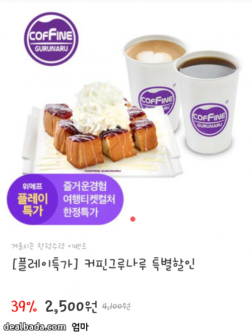 [위메프] 커핀그루나루 특별할인 (2,500원~) > 이건어때
